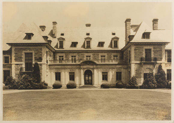 Construction on the Chateau began in 1896 by the New York firm of Carrere & Hastings. Nearly two hundred craftsmen, many of whom were dispatched from Europe, were commissioned to create this dynamic structure. Some sixteen years later, the seventy-room Mansion, once known as Indian Oaks, was completed. Ornate paintings and intricate woodcarvings adorn the halls and chambers. Italian marble, in a diversity of design and color is employed extensively for fireplaces, floors and bathrooms. The vaulted ceilings of a spacious receiving room are resplendent with golden richness. The vast living and dining halls, as well as a music and fine arts chamber, are located on the main floor. A magnificent marble staircase leads to the second level. Six elegant suites, each with its own marble-fireplaced bath and bedroom, occupy this floor. The Senator and Mrs. Aldrich (former Abby Chapman Greene), each inhabited one of the three larger of these suites, which include sitting room, dressing room and walk-in closet. The Senator’s suite holds a private staircase leading to the Great Terrace overlooking Narragansett Bay. Guarding the terrace sit two decorative marble sphinxes. Above this second level are eight more suites, each with a private bath, once used for visiting guests and family. French doors serve as windows throughout the halls and rooms of this floor. All are framed by waist-high railings installed to protect Mrs. Aldrich during her occasional sleep-walking episodes.